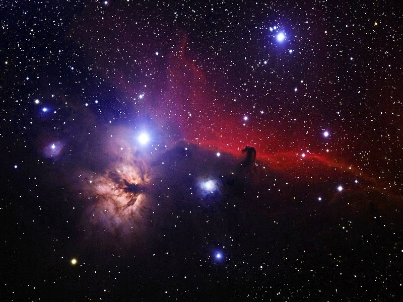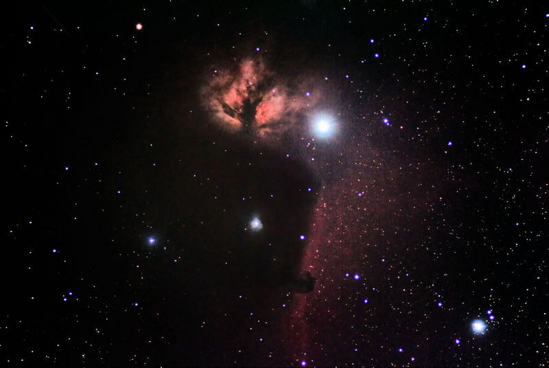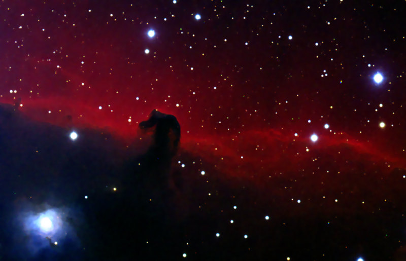 The Horsehead in Orion: Dark nebula Barnard 33 in front of red emission nebula IC434