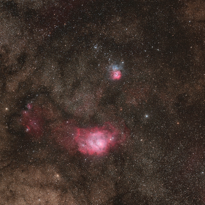 M8 (NGC6523, Lagoon Nebula), M20 (NGC6514, Trifid Nebula) & M21 (NGC6531, Open cluster) in Sagittarius
