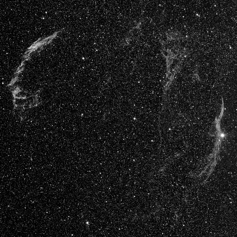 The Veil Nebula, wide field mosaic showing: Top Right - Pickering's Triangle