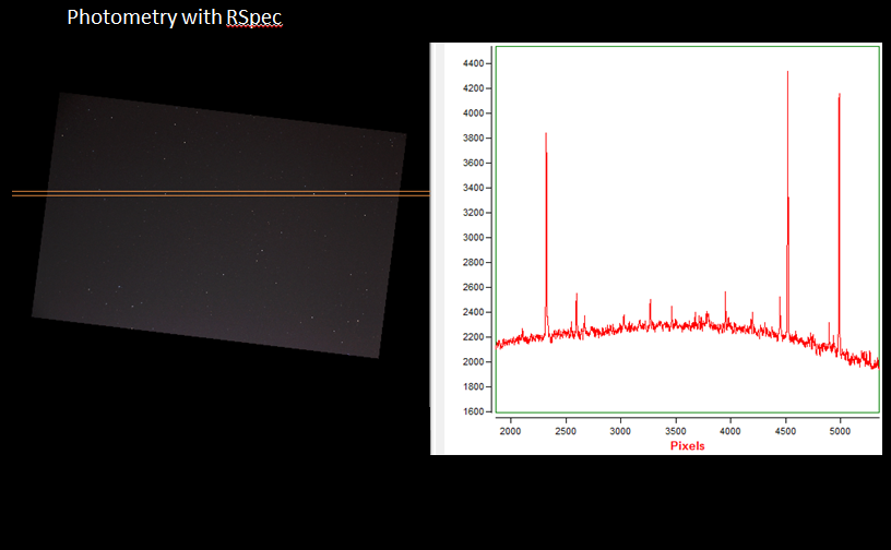 Any slice of the image can be selected. A plot of light intensity across the slice is produced. The high peak on the left is the nova. To a good approximation the peak height is proportional to the magnitude of the object