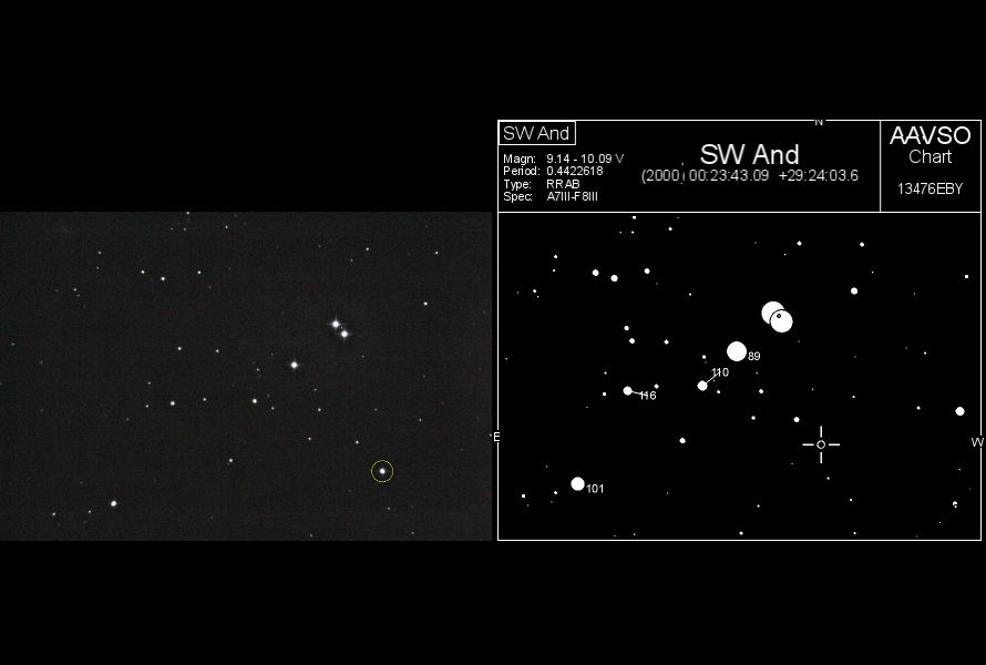 Rise to maximum of RR Lyrae type variable SW Andromedae