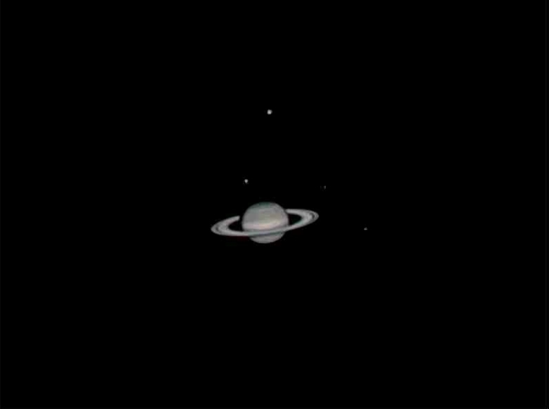 Top down, left to right : Titan, Rhea, Dione, Saturn, Tethys