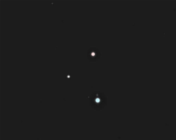 Uranus and 3 moons (Moons are close to the top diffraction spike)
