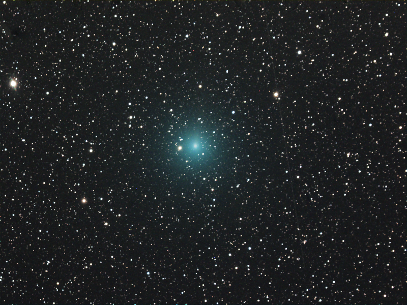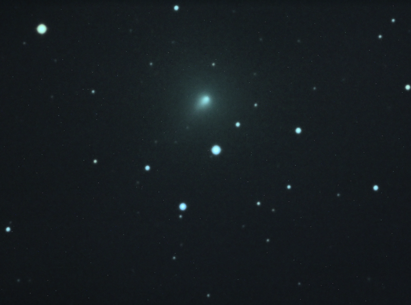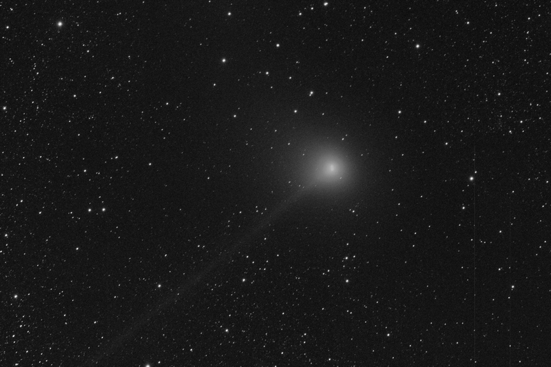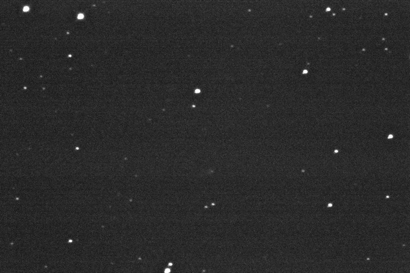 Contrast enhanced image, original shows evidence of a tail, faintest stars about mag 17