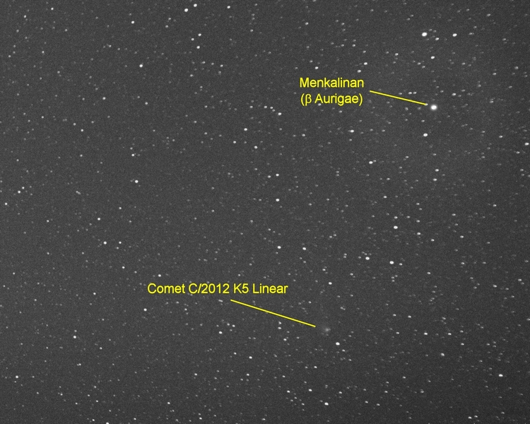 Comet C/2012 K5 Linear. Wide angle view of comet in constellation of Auriga