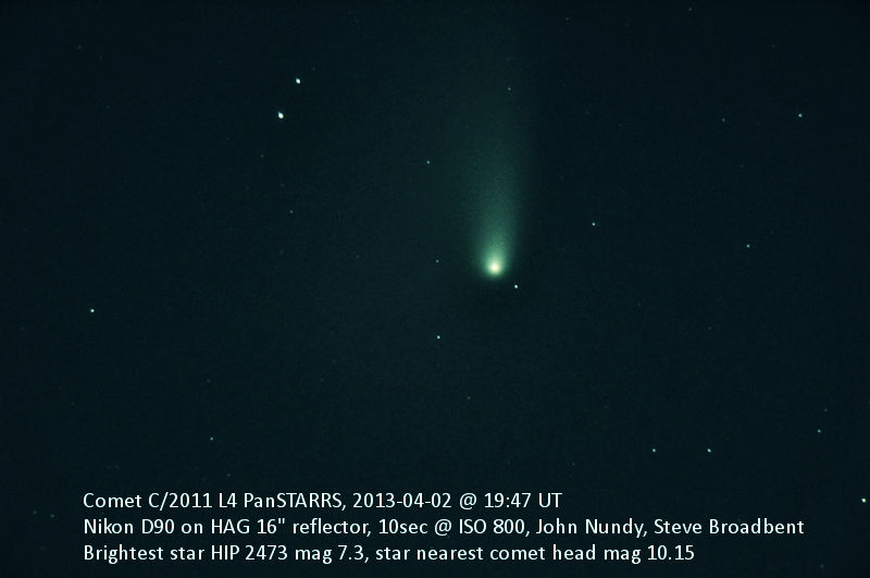 Comet C/2012 S1 ISON mag 15.4, just visible below centre, was outside orbit of Jupiter.