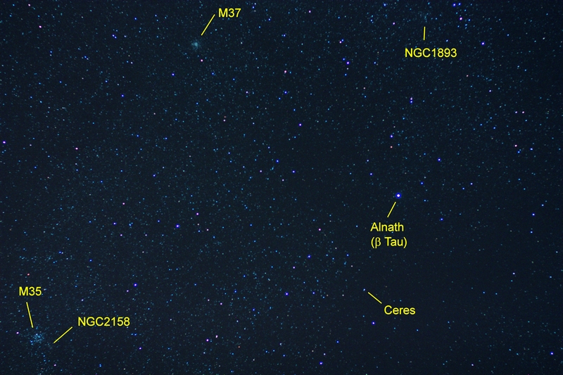 Ceres and open clusters M35 & M37