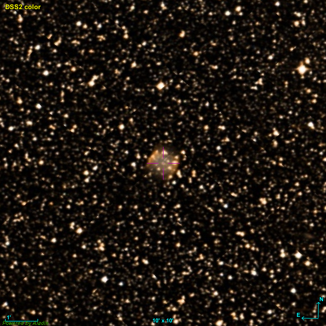Very faint bipolar arcs. Strong oxygen and nitrogen