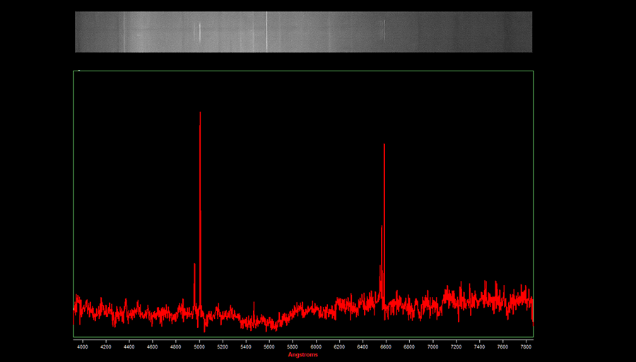 Bright part of faint ring. Oxygen and nitrogen stronger than hydrogen.