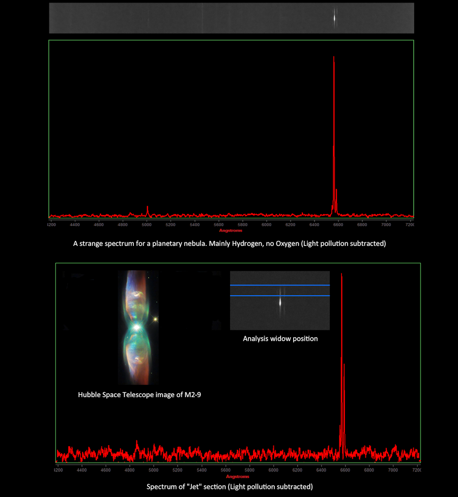 A strange spectrum for a planetary nebula. Mainly hydrogen, no oxygen