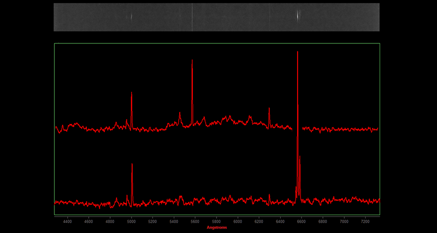 Small faint smudge. Top: Raw spectrum with light pollution. Bottom: Light pollution subtracted