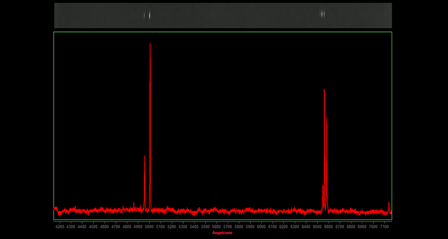 Strong nitrogen and weak Hβ, possible argon