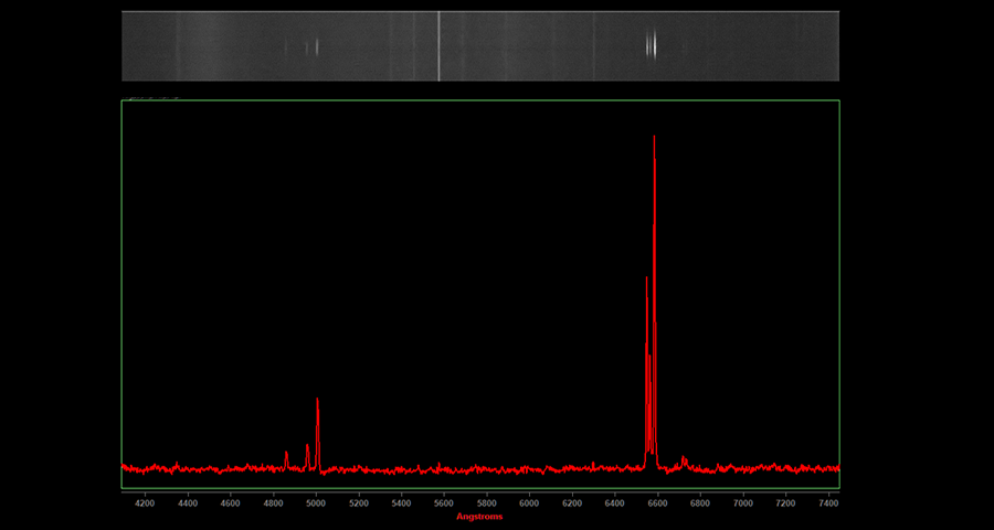 Faint red rectangle. Very strong nitrogen, some sulphur