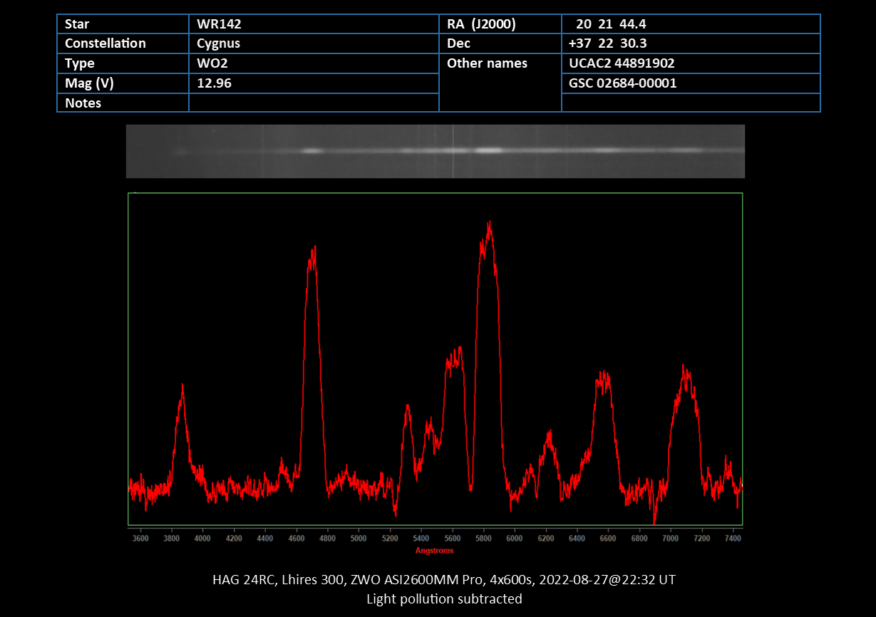 This star, of spectral classification WO2, is one of the very few known oxygen-sequence Wolf-Rayet stars.