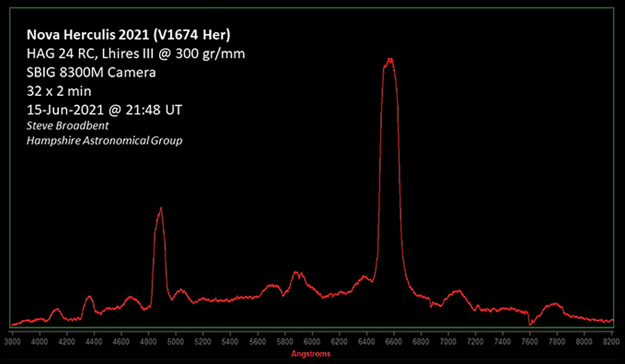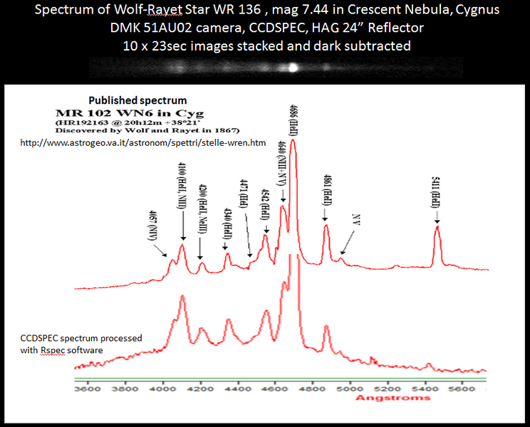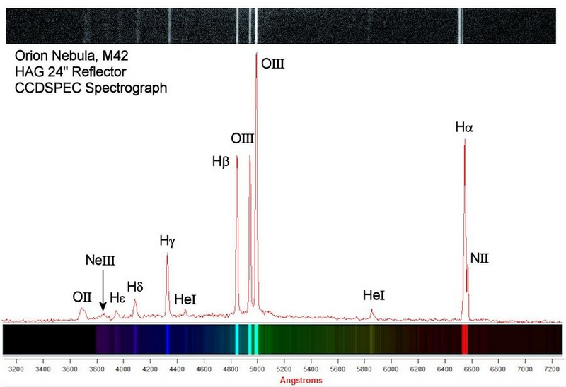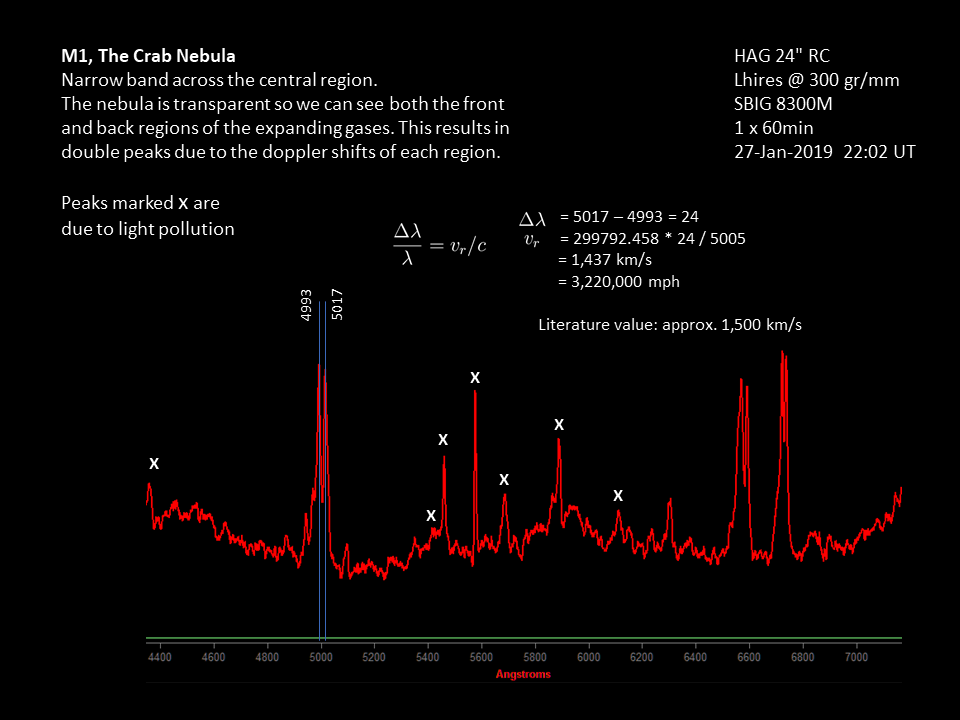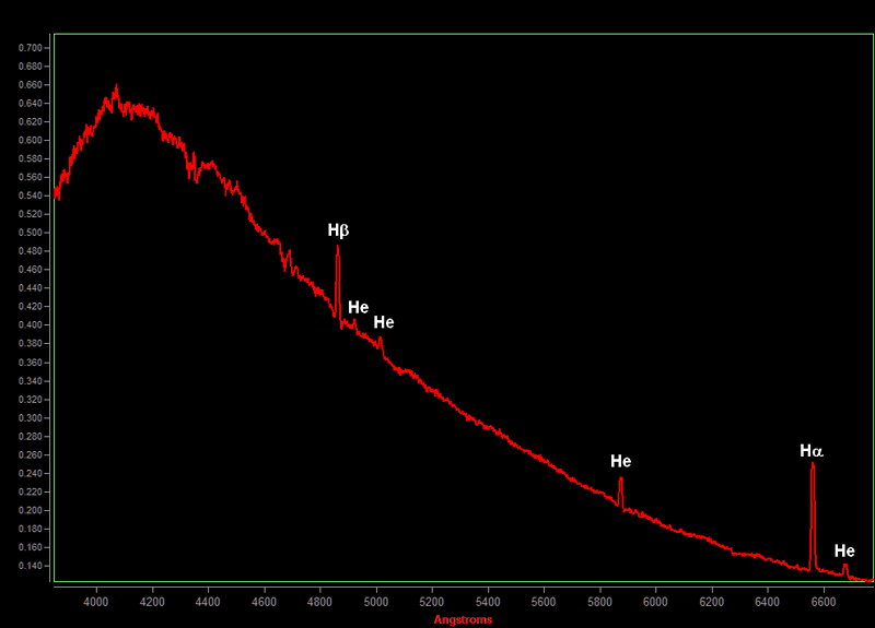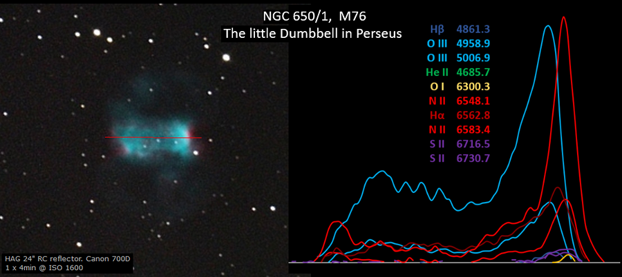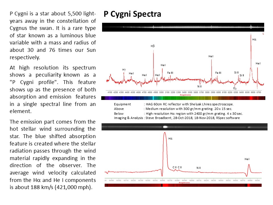 All taken using the HAG 24" RC 'David Harris' telescope, Lhires III spectroscope, 300gr/mm SBIG STF-8300M Camera, Analysis with RSpec software. Details on images.