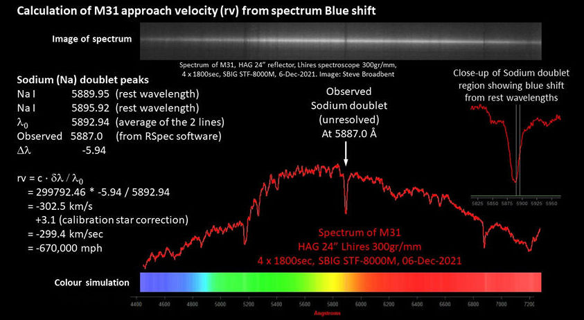 Measurement of the approach velocity of the Andromeda Galaxy (M31) from its blue Doppler shift