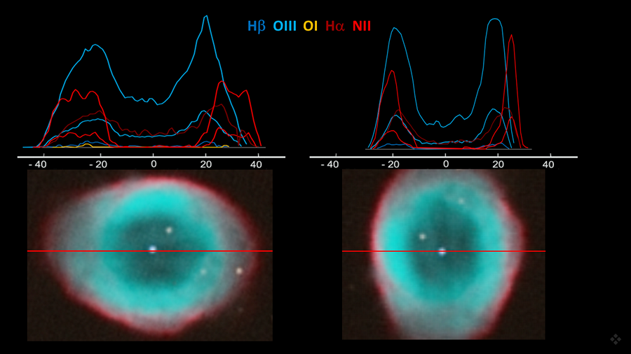 Spectral line intensity across major axis of M57 (NGC 6720), The Ring Nebula