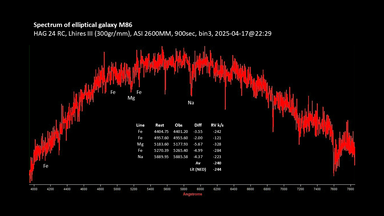 Radial Velocity of M86, elliptical galaxy in Virgo