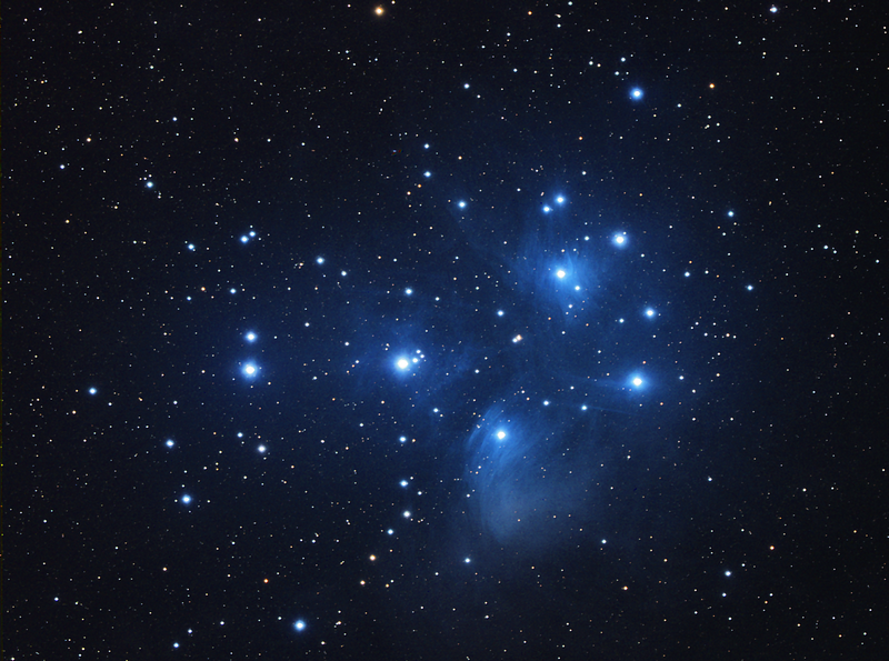 The Pleiades or 'Seven Sisters', open star cluster in Taurus
