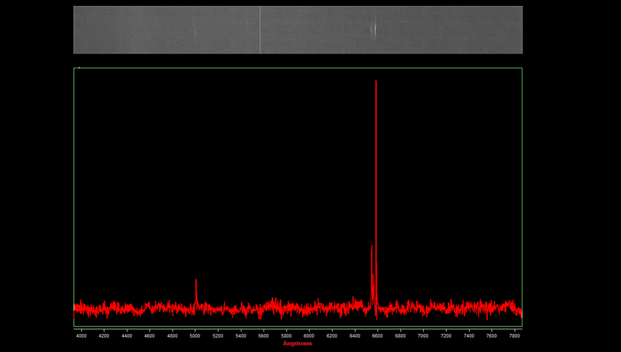 Faint, red, bipolar oval. Mainly nitrogen with very weak hydrogen and oxygen