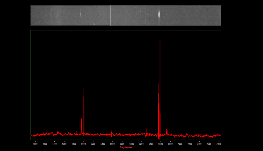 Faint ring in fainter background Hα glow. Strong nitrogen, some sulphur.