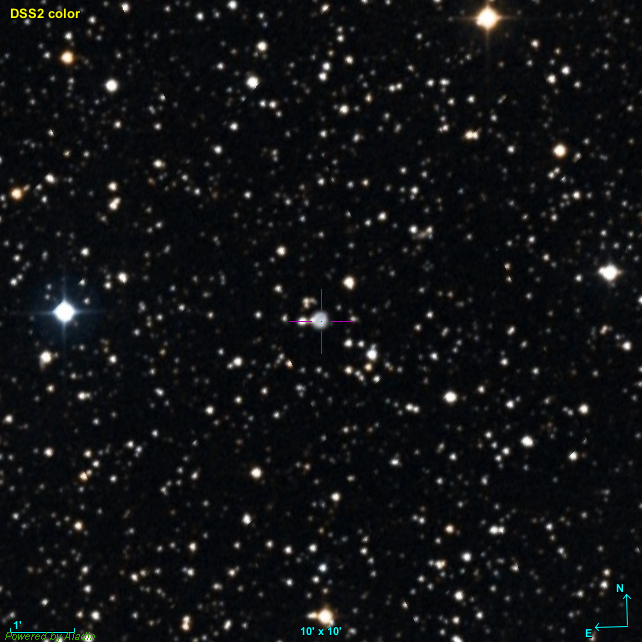 Faint small disk. Strong oxygen, some nitrogen, trace of sulphur