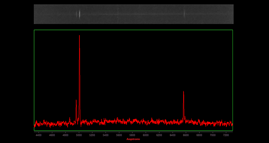 Very faint disc, strong oxygen, little nitrogen